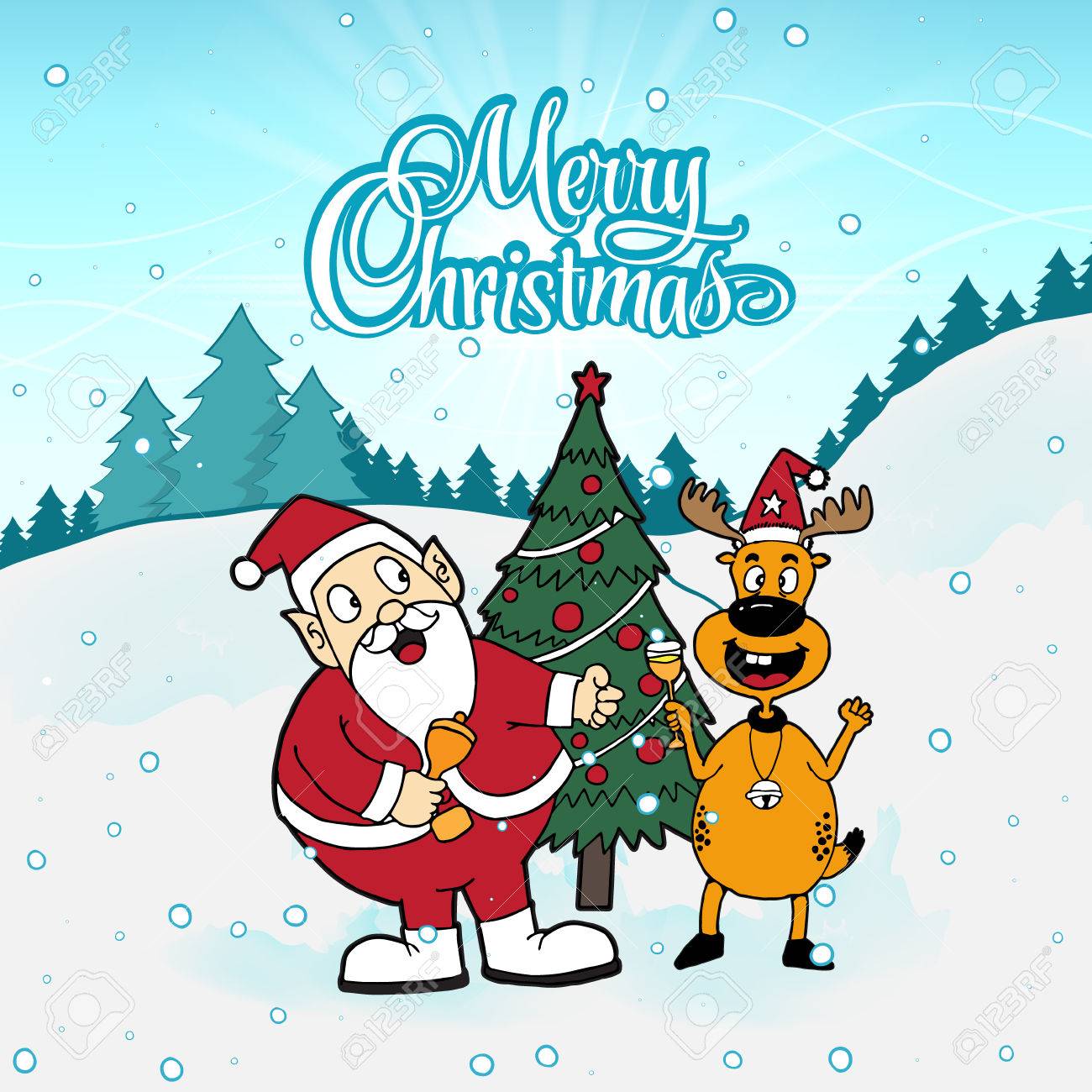 La Navidad Santa Claus Y Muestra De La Historieta Del Reno Ilustración del Vector - Ilustración de muestra, reno: 128921915